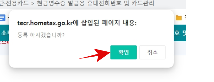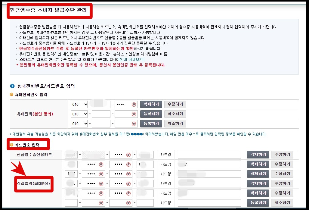 3. 현금영수증 >> 소비자 발급수단 관리 >>